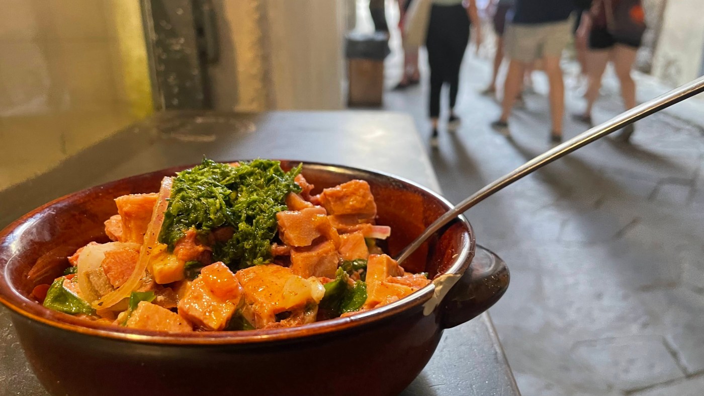 Florence, unlike some other cities of Italy, is full of street food – lampredotti stalls of course, but also arancini, porchetta, various other foods of the kind you can carry away and eat while admiring David’s muscles. On the streetfood list were the famous sandwiches of All’Antico Vinaio but the endless lines (many turned out to be Indian students from Stuttgart) discouraged me but I found interesting stalls selling colourful snacky stuff all over the place.
